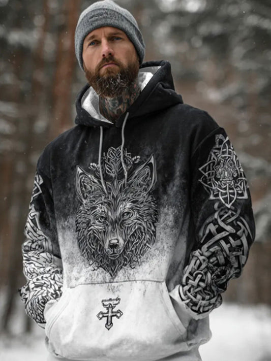Pánské vintage tištěné casual kapucna tlustá bunda