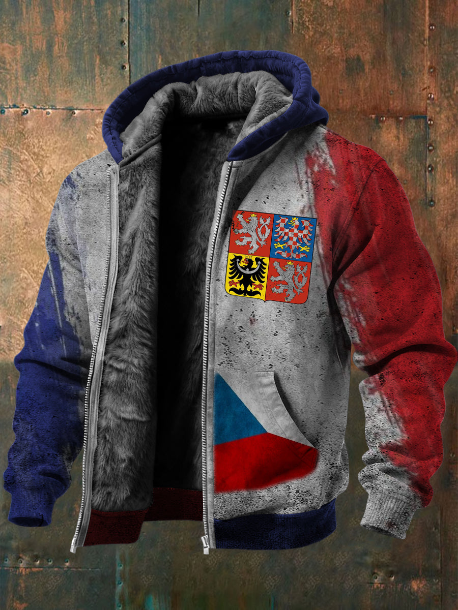 Pánské špinavé české erb tisk fleecelemované zip bundy