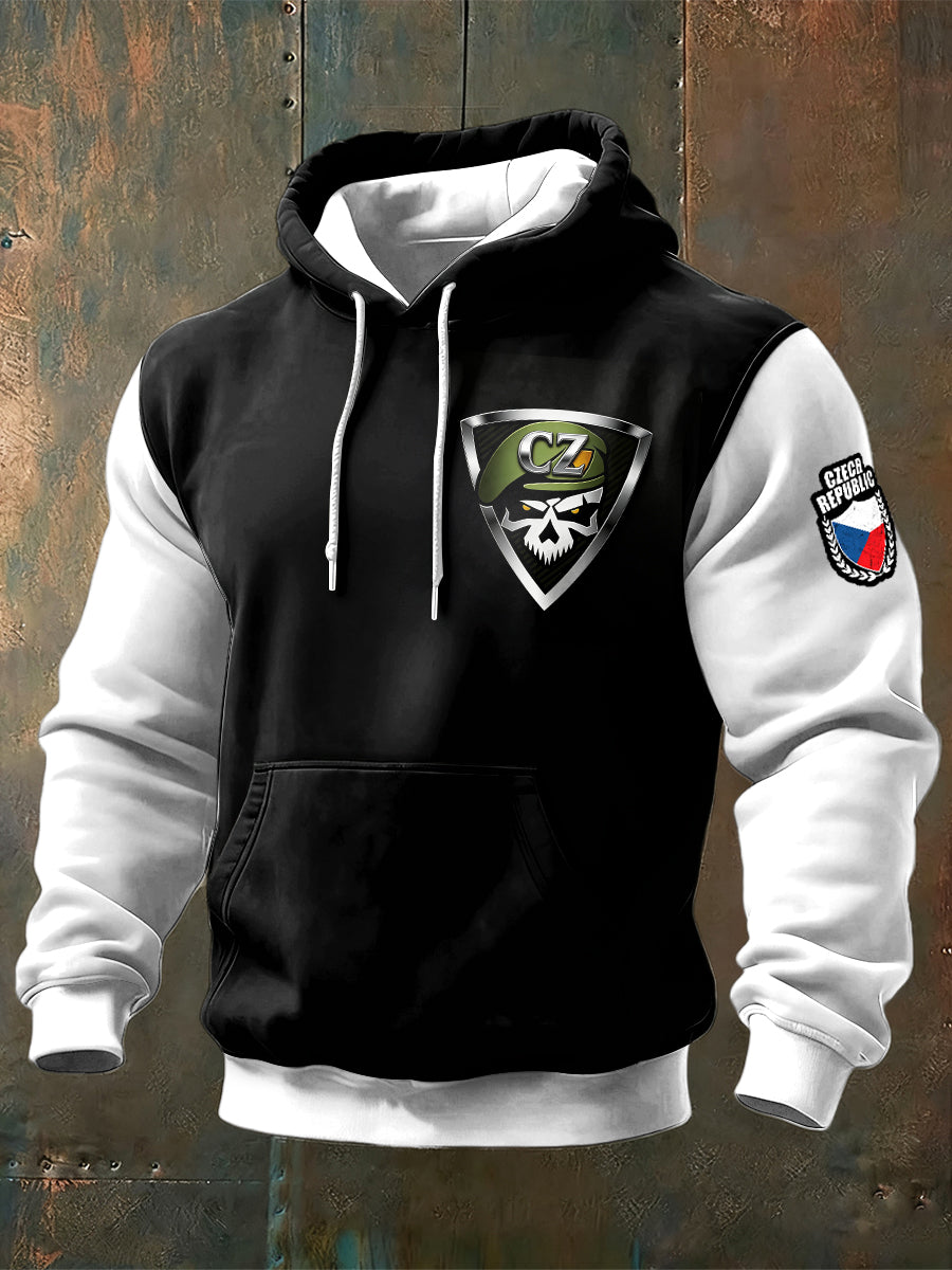 Černá a bílá mikina s kapucinou patchwork
