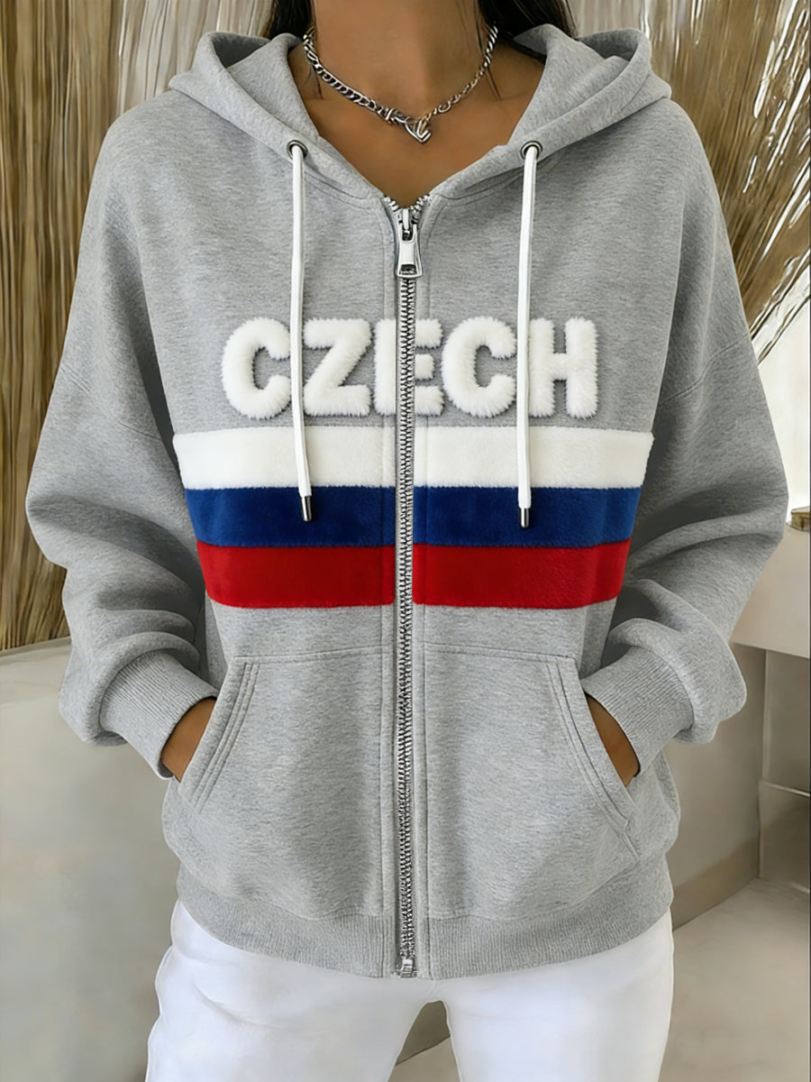 Dámské útulná šedá "česká" vlajka pruhovaná mikina