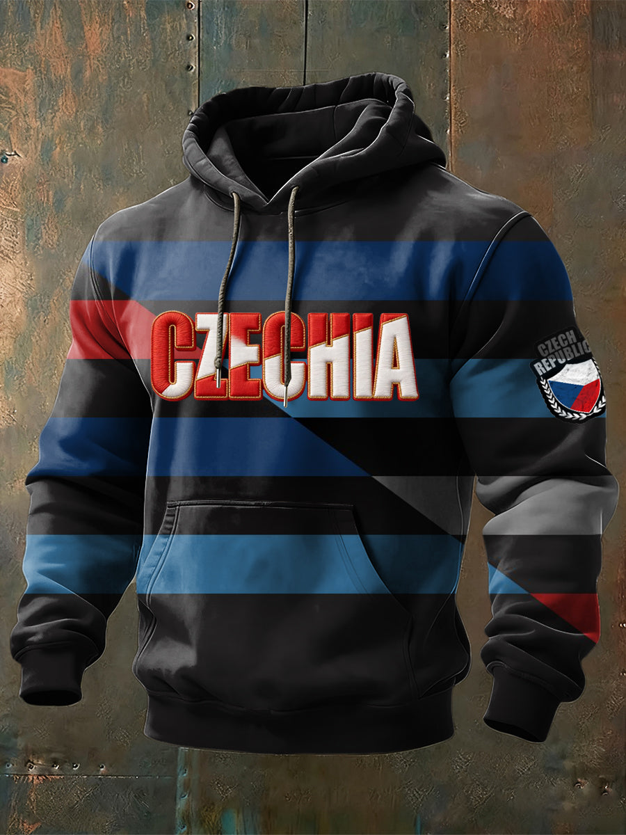 Pánské barevné bloky s písmenem česká téma mikina s kapucinou