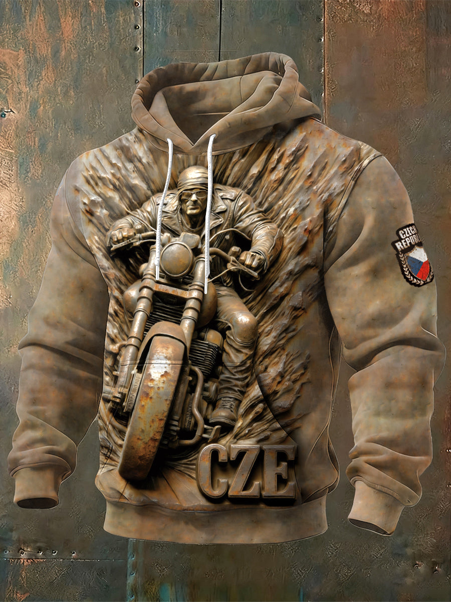 Pánské české divoké motocykl vytisknout vintage mikina s kapucnou