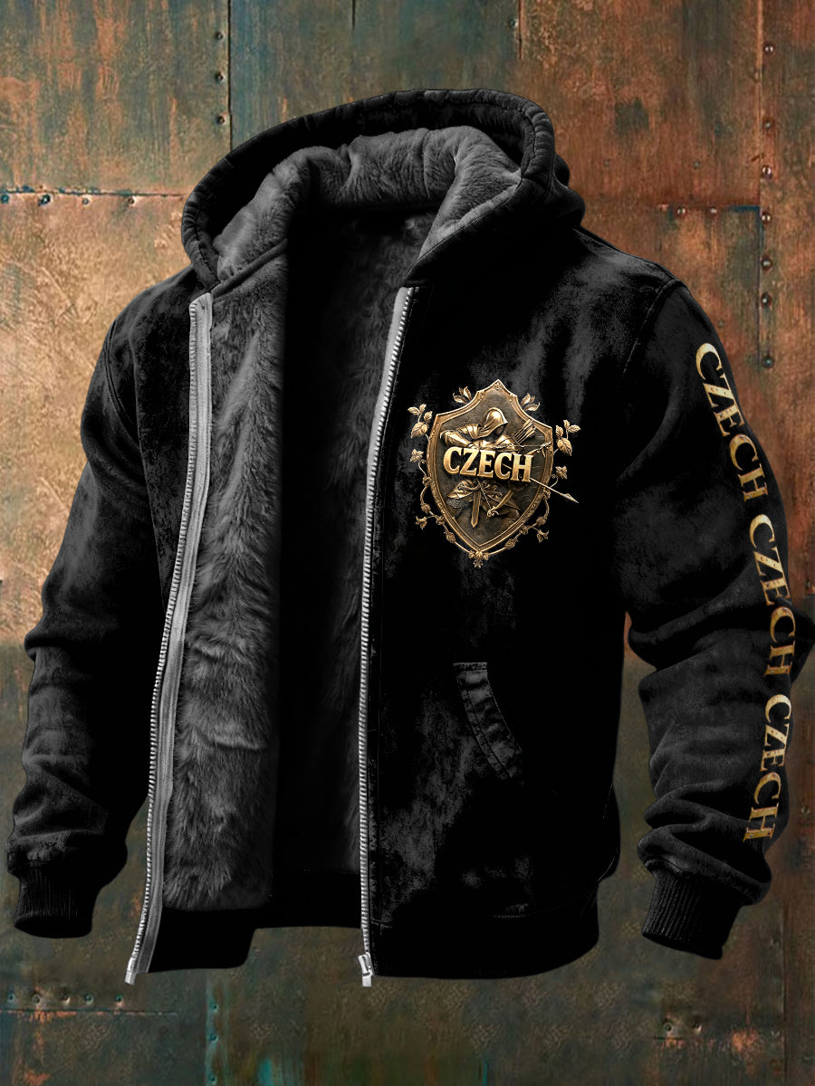 Pánské české kovové tlače černé fleecelemované sako