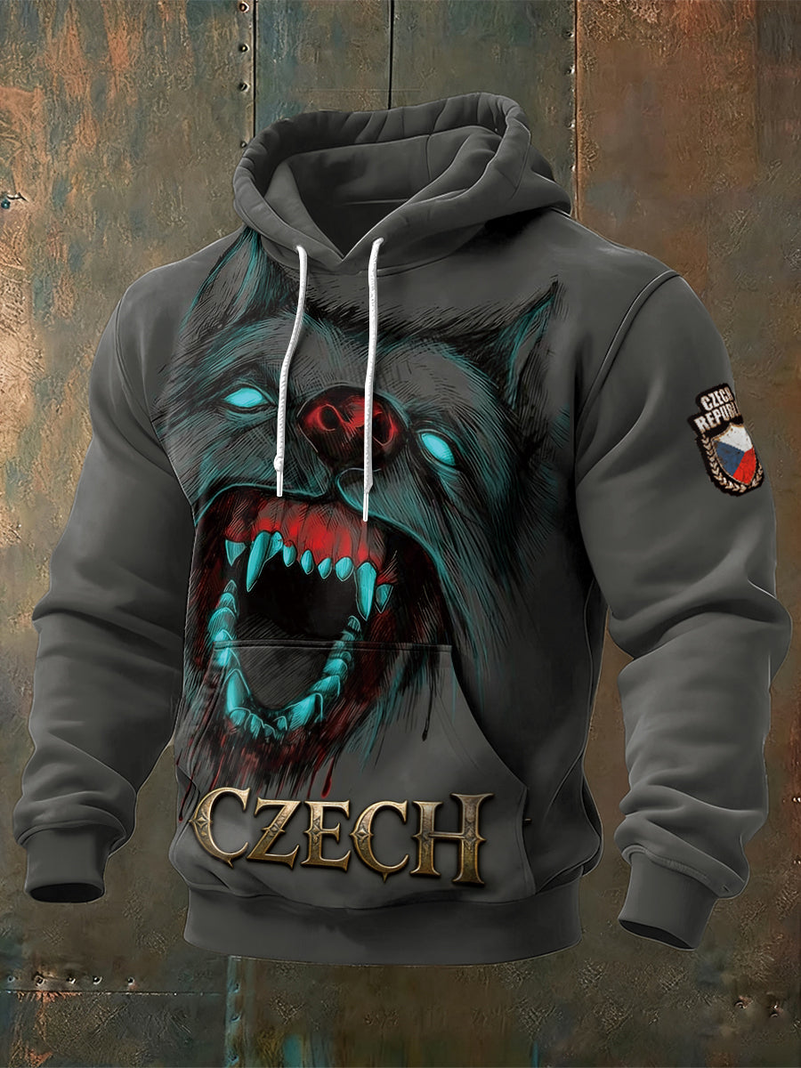 Pánské české módy vytištěné šedá mikina s kapucnou