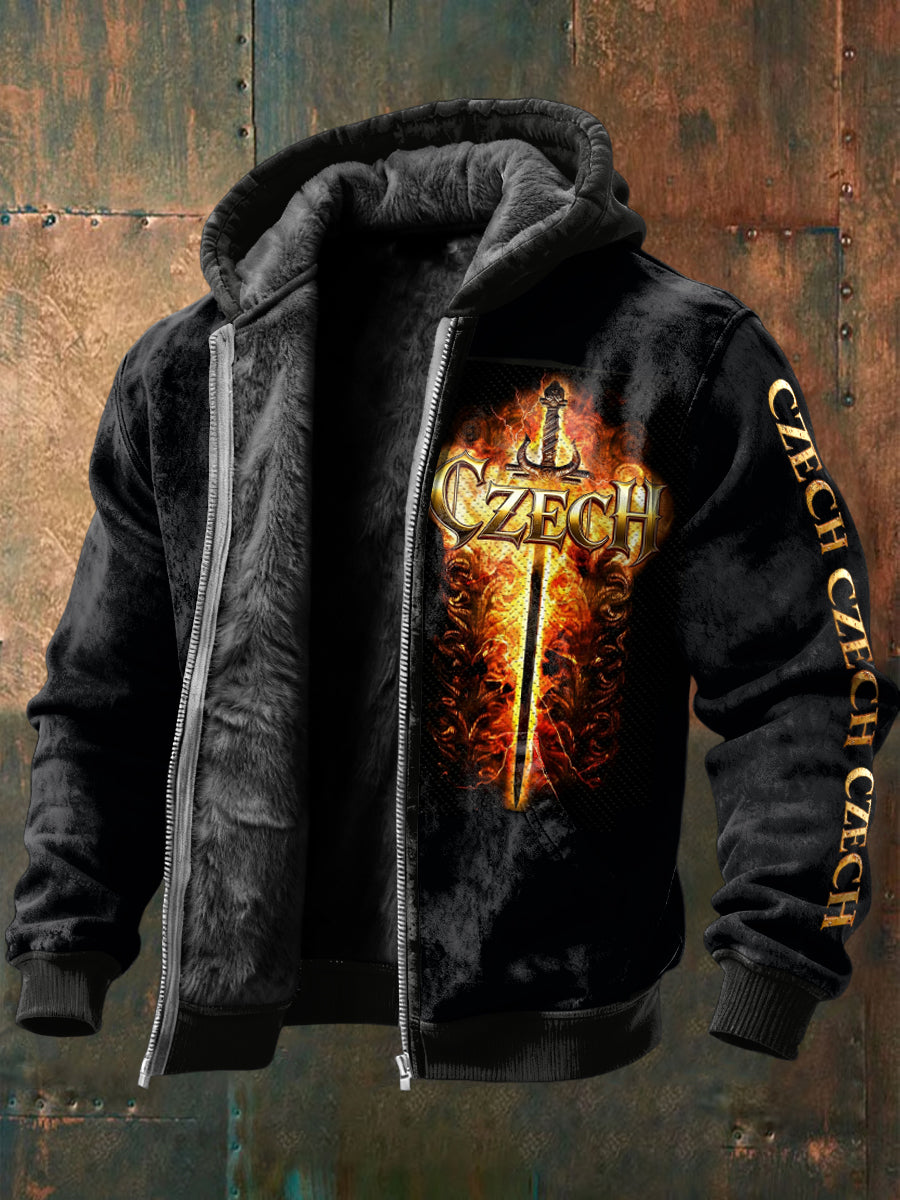 Pánské české plameny design tištěné černé fleecelemované sako