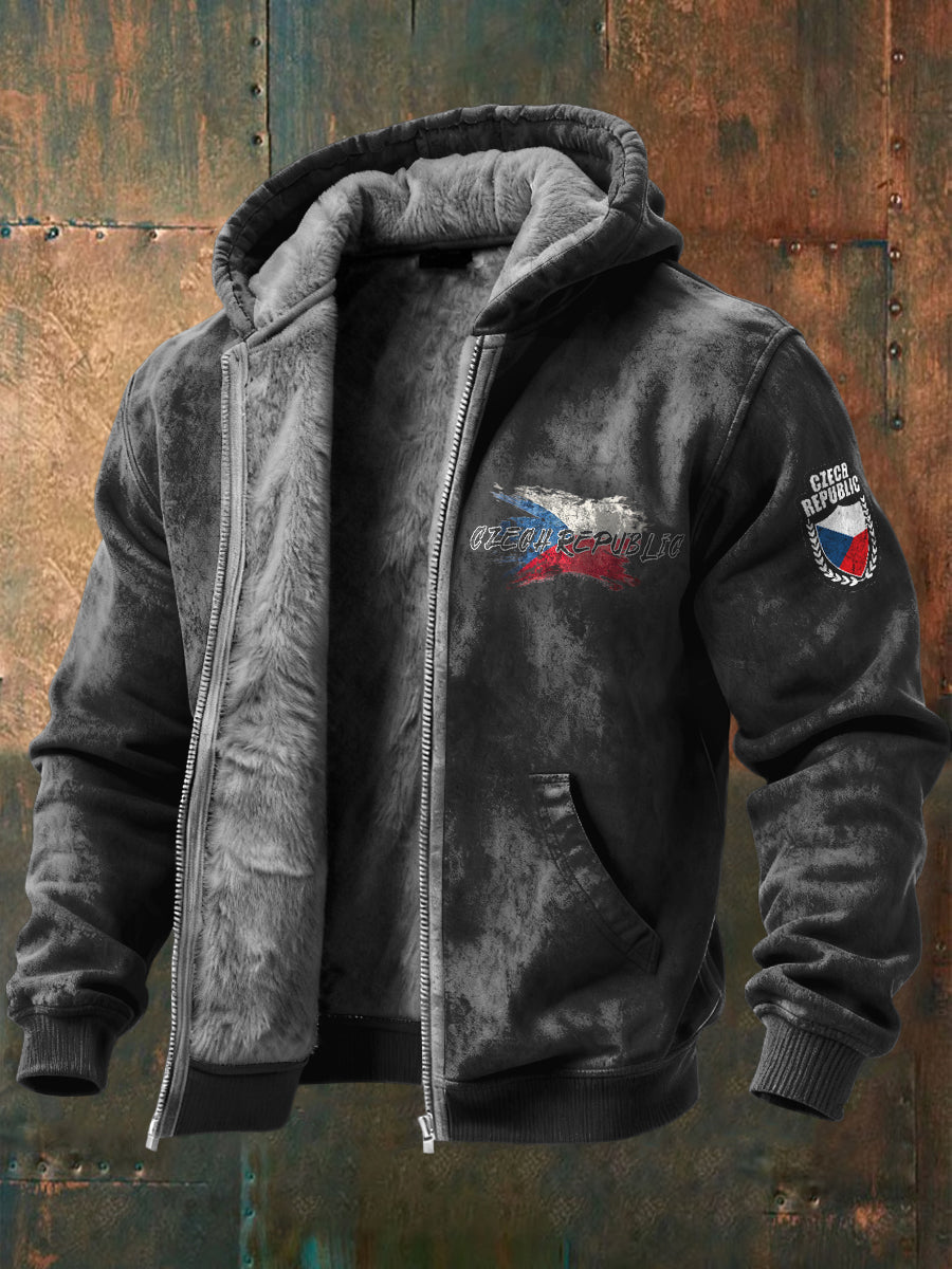 Pánské české vlajky minimalistická tmavě šedá fleecová bunda