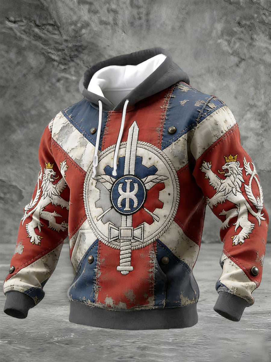 Pánské české vlajky patchwork print vintage kontrola bavlněné mikiny