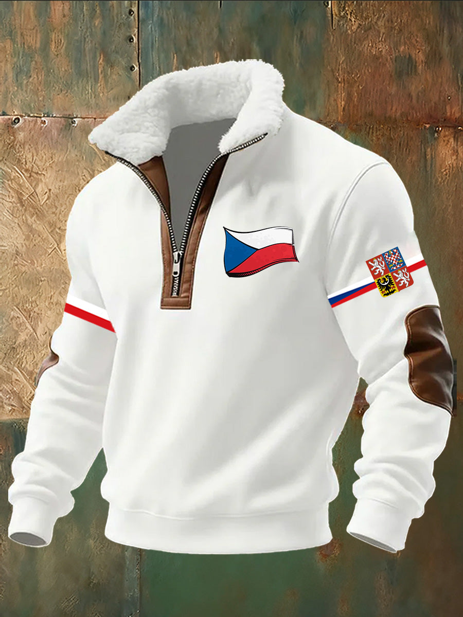 Pánské české vlajky tisk standup golier pohodlná mikina