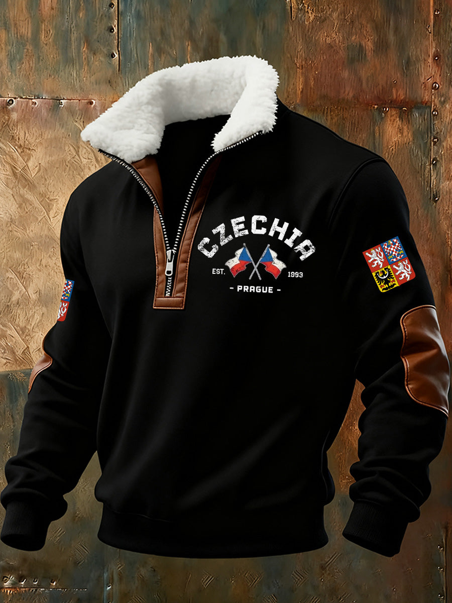 Pánské české vlajky tisk standup golier pohodlná mikina