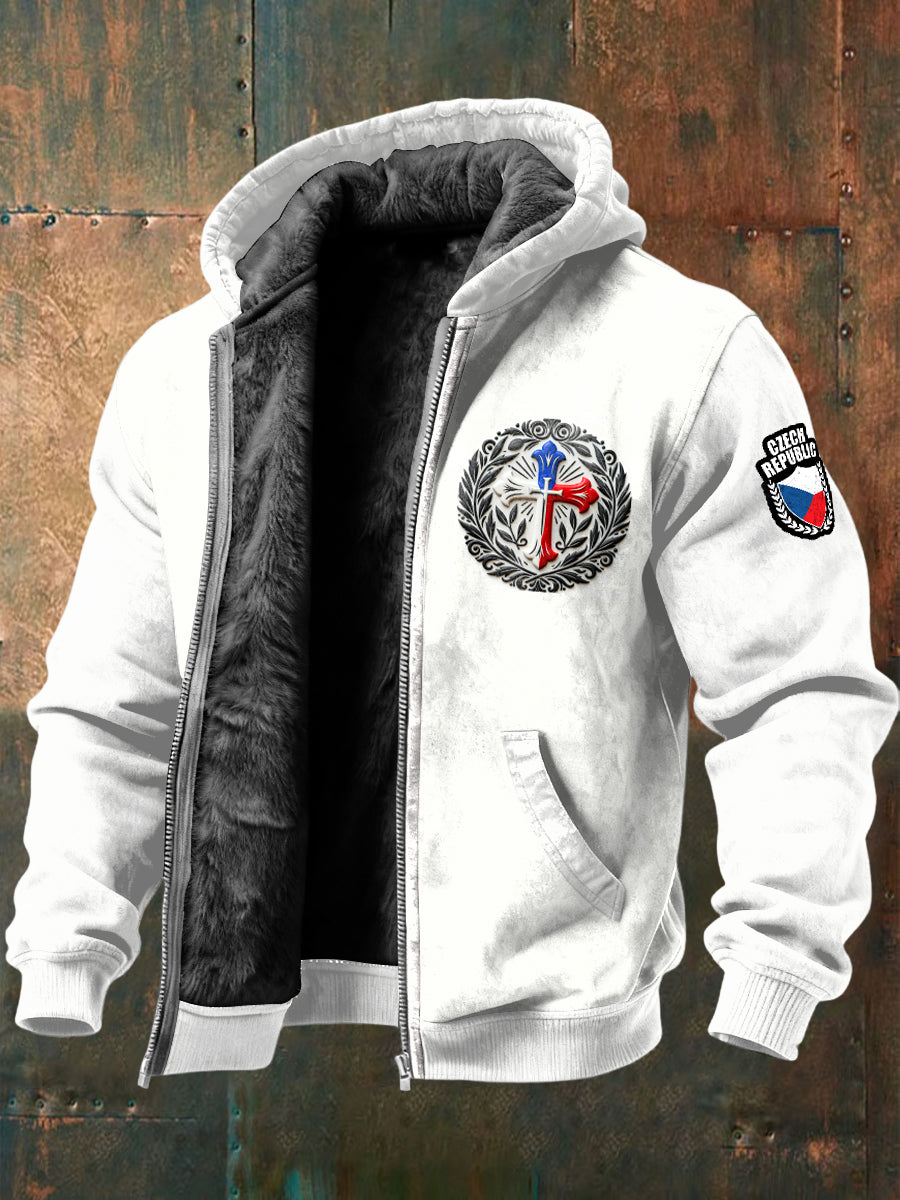 Pánské fleecelemované sako s českou vlajkou kříž design