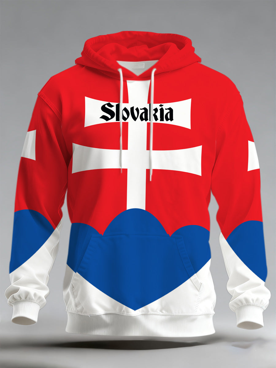 Pánské slovenské tisk mikina s kapucinou s dlouhým rukávem