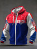 Retro czech hockey patchwork casual waffle hooded jacket