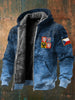 Retro texturované české emblémy fleecelemované kabát s kapucinou